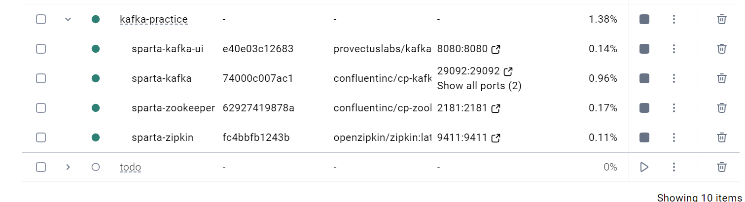 실습을 위해 kafka, kafka-ui, zookeeper, zipkin을 docker-compose 기술을 활용하여 띄워둔다.